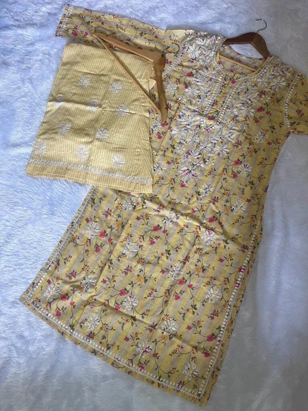 Lucknow Chikankari Printed Long Kurti Kurta Embroidery Etsy Australia